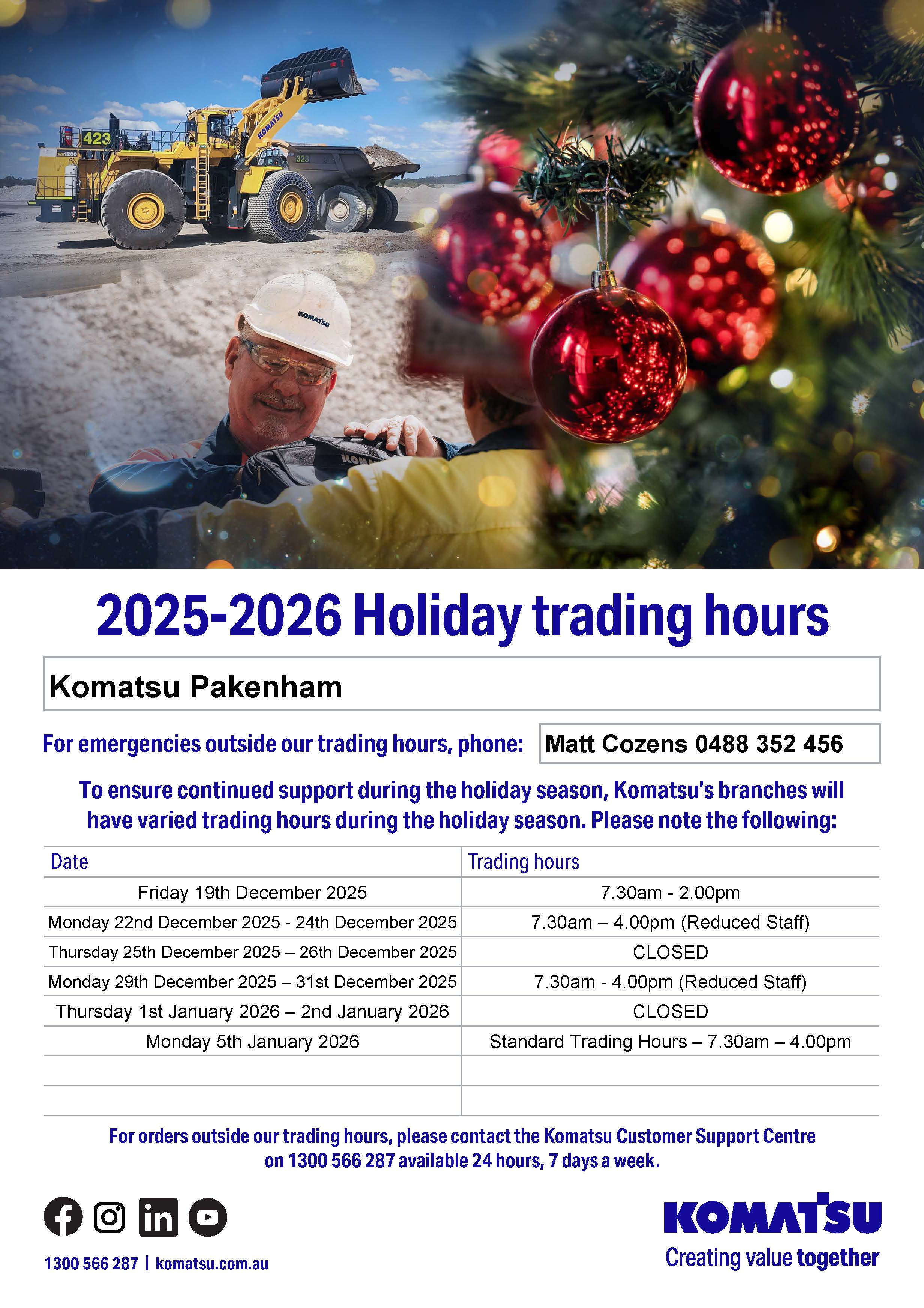 Komatsu provides essential equipment, technologies and services to the construction, mining, energy, government, waste and quarry industries.